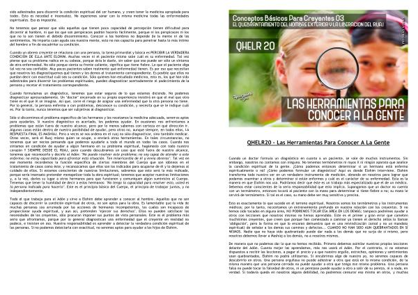 Todo el que trabaja para el Adón y sirve a Elohim debe aprender a conocer al hombre . Aquellos que no son capaces de discernir la condición espiritual de otros , no son aptos para la obra . Es lamentable que la vida de muchas personas sea arruinada por las acciones de hermanos incompetentes , los cuales son incapaces de proporcionar ayuda espiritual , y aun así , pretenden " ejercer sus derechos ". Ellos no pueden satisfacer las necesidades de los creyentes , sólo procuran imponer sus puntos de vista personales . Este es el problema más serio que afrontamos , porque por lo general diagnostican una enfermedad que el creyente en realidad no padece , e insisten en eso . Nuestra responsabilidad es aprender a detectar la verdadera condición espiritual de las personas . Si no podemos detectarla con exactitud , no seremos aptos para ayudar a los hijos de Elohim .