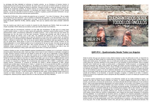 Él dispone todas las circunstancias conforme a lo que sabe que necesitamos . Él sabe qué es lo mejor para nuestro hombre interior , y cuál es la mejor manera de quebrantar y deshacer nuestro hombre exterior . Él sabe perfectamente cuáles circunstancias quebrantan al hombre exterior ; y por lo tanto hace que eso mismo nos sobrevenga una vez , dos veces o las que sean necesarias . Tenemos que entender que todo lo que nos ha acontecido durante los últimos cinco o diez años , fue ordenado por Elohim con el fin de instruirnos . Si murmuramos contra otros o pensamos que lo que nos acontece es una mala racha o mala suerte , no tenemos idea de lo que es la disciplina del Ruaj haKodesh . Recordemos que todo lo que nos sucede ha sido calculado por Elohim y redunda en nuestro bien . Tal vez no sea de nuestro agrado , pero Elohim sabe que aquello es lo mejor que nos puede pasar . Basta pensar un poco en las aflicciones que podríamos haber sufrido si Elohim no nos hubiera golpeado y si no nos hubiese puesto en las circunstancias en las que nos puso . Son éstas las que nos han mantenido puros y en el camino del Adón . Pero muchas personas no se someten a la disciplina del Ruaj haKodesh , porque neciamente murmuran y se resienten en su corazón . No olvidemos que todo lo que nos acontece ha sido medido por el Ruaj , quien sólo busca nuestro bien y lo mejor para nosotros .