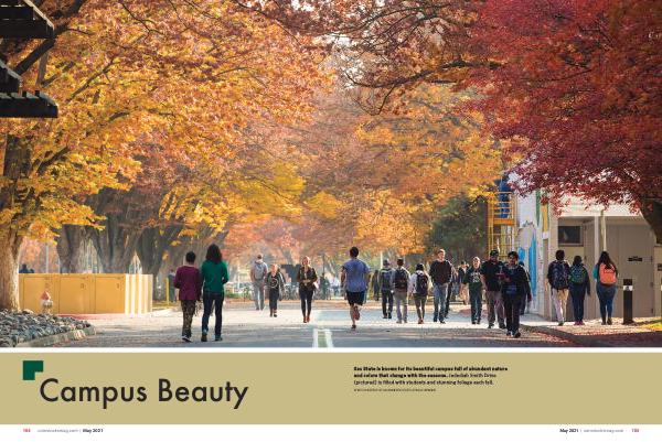 Sac State is known for its beautiful campus full of abundant nature and colors that change with the seasons . Jedediah Smith Drive ( pictured ) is filled with students and stunning foliage each fall .