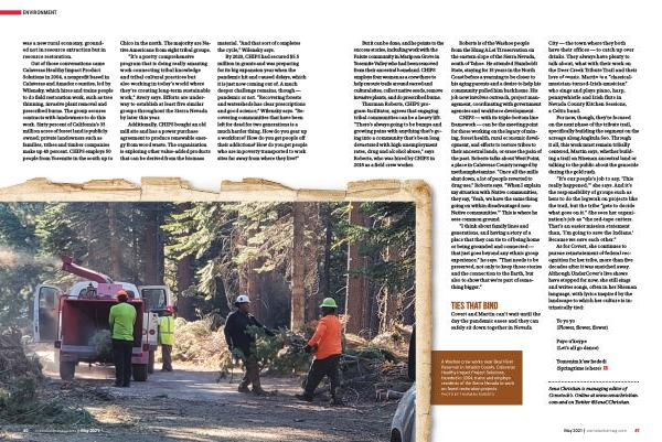 But it can be done , and he points to the success stories , including work with the Paiute community in Mariposa Grove in Yosemite Valley who had been removed from their ancestral homeland . CHIPS employs four women as a crew there to help reroute trails around sacred and cultural sites , collect native seeds , remove invasive plants , and do prescribed burns . Thurman Roberts , CHIPS program facilitator , agrees that engaging tribal communities can be a heavy lift . “ There ’ s always going to be bumps and growing pains with anything that ’ s going into a community that ’ s been long devastated with high unemployment rates , drug and alcohol abuse ,” says Roberts , who was hired by CHIPS in 2018 as a field crew worker .
