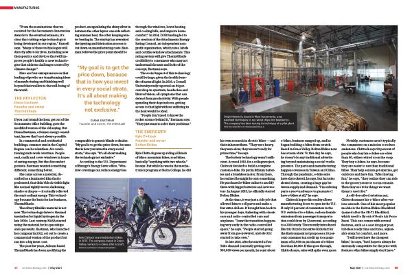 In late 2018 , after he started a You- Tube channel ( currently getting over 500,000 views per month , he says ) about e-bikes , business ramped up , and he began building e-bikes from scratch . Based in Grass Valley , Bolton Ebikes now has a team of six . To this day , he says , he doesn ’ t do any traditional advertising beyond maintaining a social media presence . The parts and manufacturing happens overseas in Taiwan and China . Through the pandemic , e-bike sales have skyrocketed , he says , but factories slowed down , creating a huge gap between supply and demand . “ I ’ m ordering parts a year in advance to guarantee I have e-bikes at all ,” he says .