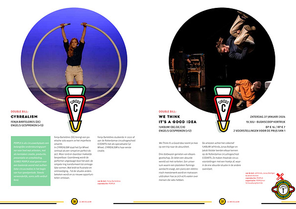 Fenja Barteldres ( DE ) brengt een poëtische solo waarin ze het imperfecte omarmt . In CYRREALISM staat het Cyr Wheel centraal als een simpel en perfect object . Mooi rond en daardoor makkelijk bespeelbaar . Gaandeweg wordt de performer uitgedaagd door het wiel : de simpele ring transformeert tot onmogelijke vormen . Wat leidt tot frustratie en ontmoediging … Tot de situatie anders bekeken wordt en zo nieuwe opportuniteiten ontstaan .