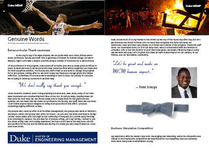 Now, I know most of us say thanks to the drivers as we hop of the buses day after day, but let’s get involved and invest in them. Let’s do more than recognize the faces that keep our bathrooms clean and trash cans empty. Do it inside and outside of the program. Thank the staff more, our classmates more. Do it in our daily lives. Have a conversation with the workers at Armadillo Grill or the line monitor at your next Duke game. We make a financial impact every day we work and play. Let’s be great and make an MEM human impact on our campus, in our friends, and our worldwide community.