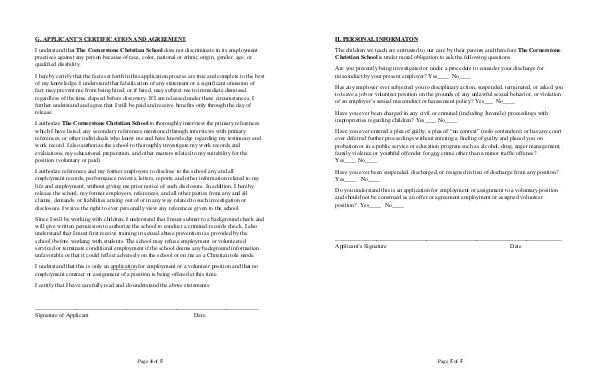 I understand that The Cornerstone Christian School does not discriminate in its employment