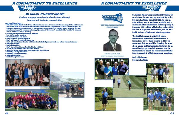 The dignified manner in which Bill Moore conducted all aspects of his life served as a lesson to us all. For those reasons, in 2014, we announced that we would be changing the name of our annual golf tournament in his honor. On an annual basis, a portion of all proceeds from the tournament will benefit the Moore Family Athletic Fund in support of athletic department operations.