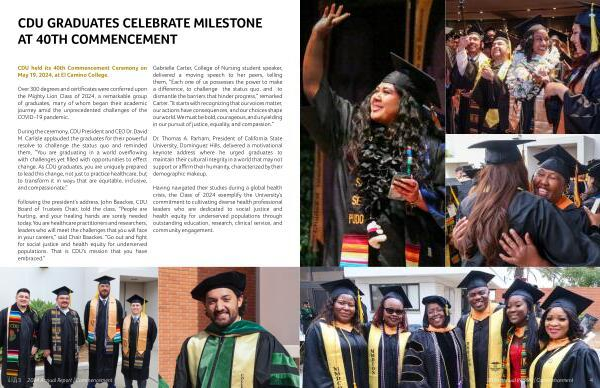This year, we celebrated extraordinary milestones, most notably, the historic launch of our independent four-year MD program, a bold step that affirms CDU’ s place at the forefront of equitable medical education. Our inaugural cohort embodies the future of medicine: diverse, determined, and driven by a vision for a more just world.