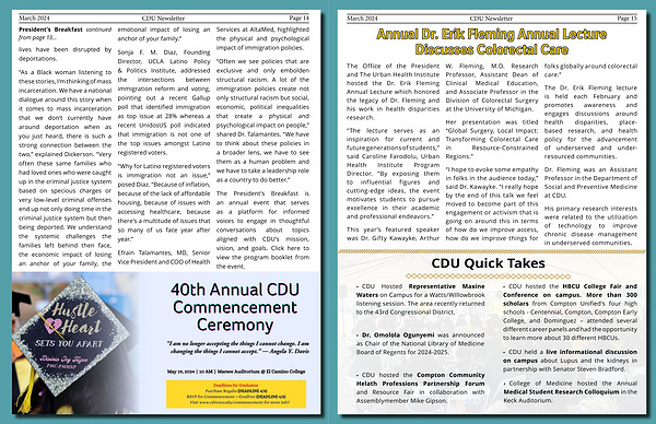The President ’ s Breakfast is an annual event that serves as a platform for informed voices to engage in thoughtful conversations about topics aligned with CDU ’ s mission , vision , and goals . Click here to view the program booklet from the event .