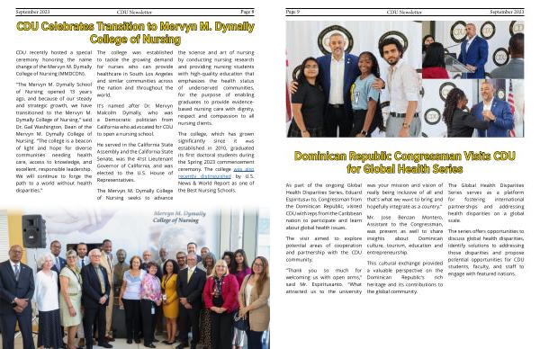 CDU recently hosted a special ceremony honoring the name change of the Mervyn M . Dymally College of Nursing ( MMDCON ).