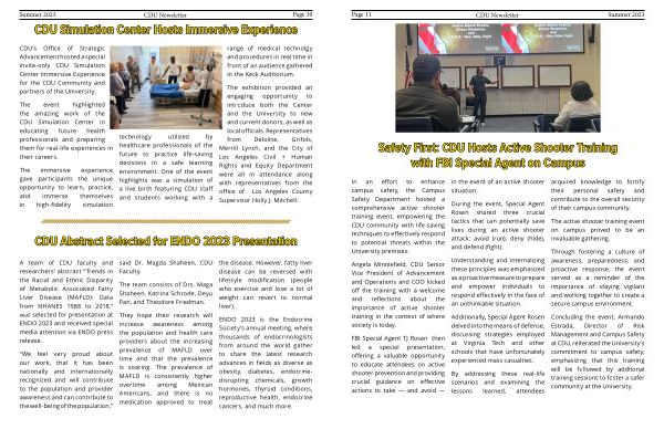 In an effort to enhance campus safety , the Campus Safety Department hosted a comprehensive active shooter training event , empowering the CDU community with life-saving techniques to effectively respond to potential threats within the University premises .