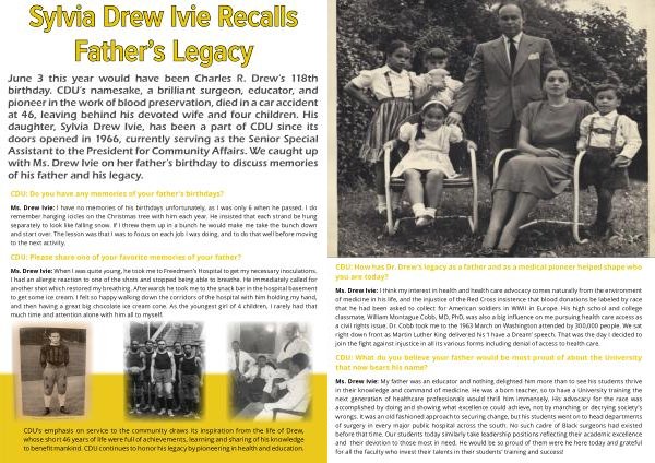 Ms . Drew Ivie : My father was an educator and nothing delighted him more than to see his students thrive in their knowledge and command of medicine . He was a born teacher , so to have a University training the next generation of healthcare professionals would thrill him immensely . His advocacy for the race was accomplished by doing and showing what excellence could achieve , not by marching or decrying society ’ s wrongs . It was an old fashioned approach to securing change , but his students went on to head departments of surgery in every major public hospital across the south . No such cadre of Black surgeons had existed before that time . Our students today similarly take leadership positions reflecting their academic excellence and their devotion to those most in need . He would be so proud of them were he here today and grateful for all the faculty who invest their talents in their students ’ training and success !
