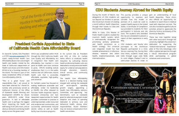During the month of March , two delegations of CDU students set out beyond our borders to pursue the University ’ s mission of creating a world without health disparities through their travels to Cuba and the Dominican Republic .