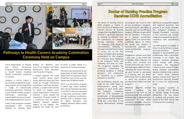 CDU ’ s Department of Pipeline and School Partnership Programs hosted the Pathways to Health Careers Academy ( PHCA ) Culmination Ceremony on campus .