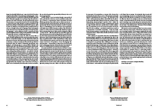 by proponents of Conceptualism as a travesty of the advances that movement had made in the 60s and 70s. This miniature minimalist vignette overcompensates for its occasion – the abstraction of the red dot – with its material specificity: a hole drilled into the plasterboard wall and filled with cadmium red oil paint, as plump as putty. Extrapolating phenomenological experience from a cipher, the paint redeems the convention it mimics, transforming the artwork as a sign of market value into a specific object. A cynical confirmation of consumerism proves to be its discreet nemesis. But the fact that Sold is also a painting – a modernist monochrome as much as a demonstration of minimalist materialism – derails any simple binary between painting as commodity and the red dot as its anticonsumerist inverse. Parity between Baselitz and Floyer is restored at the last moment.