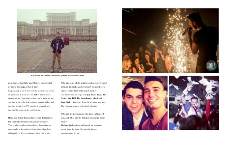 Who are the performers who have influenced Have you found that audiences are different in the countries where you have performed? Yes, it all depends on the culture. Some fans are more mellow than others. Some show their love differently. It all even changes from city to city. you, and what are the things you admire about them? Michael Jackson has influenced me to create music from the heart. He was the king of entertainment for me.