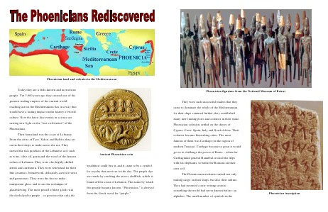 Today they are a little-known and mysterious people. Yet 3,000 years ago they created one of the greatest trading empires of the ancient world, reaching across the Mediterranean Sea in a way that would have a lasting impact on the history of world culture. Now the latest discoveries in science are casting new light on the “lost civilization” of the Phoenicians. Their homeland was the coast of Lebanon. From the cities of Tyre, Sidon, and Byblos they set out in their ships to trade across the sea. They carried the rich products of the Lebanese soil, such as wine, olive oil, grain and the wood of the famous cedars of Lebanon. They were also highly-skilled artists and craftsmen. They were renowned for their fine ceramics, bronzework, delicately-carved ivories and gemstones. They were the first to make transparent glass, and to use the technique of glassblowing. The most prized of their goods was the cloth dyed in purple – so precious that only the wealthiest could buy it, and it came to be a symbol for royalty that survives to this day. The purple dye was made by crushing the murex shellfish, which is found off the coast of Lebanon. The name by which this people became known, “Phoenician,” is derived from the Greek word for “purple.” Ancient Phoenician coin