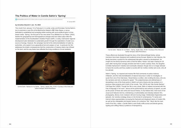 Cemile Sahin, who is presenting a new installation at the gallery, is also presenting a film project at the Akademie der Künste. Her new film, entitled Bad People, Bad News, centers on three Kurdish women who gather every year in a hotel to commemorate the death of Sadam Hussein. Screened within an environment, the film explores the consequences of diaspora on memory and identity.