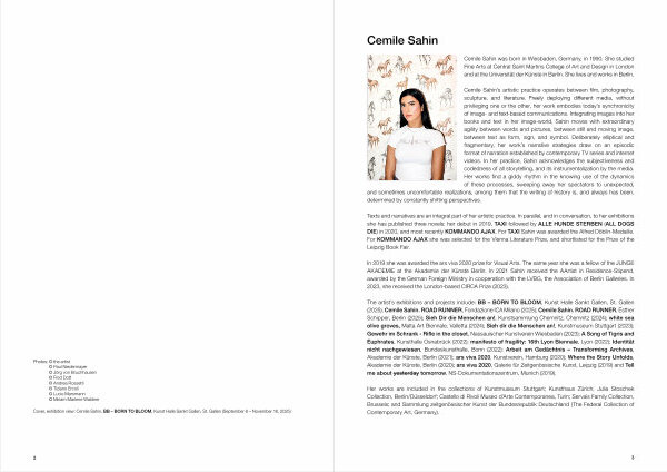 Cover, exhibition view: Cemile Sahin, BB – BORN TO BLOOM, Kunst Halle Sankt Gallen, St. Gallen( September 6 – November 16, 2025)