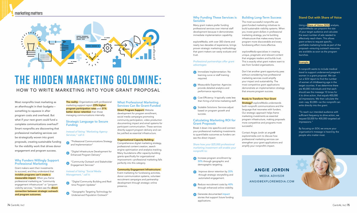 Most nonprofits treat marketing as an afterthought in their budgets— something to squeeze in after program costs and overhead. But what if your next grant could fund a complete communications overhaul? Smart nonprofits are discovering that professional marketing services can be strategically woven into grant proposals, creating sustainable funding for the visibility work that drives donor engagement and program success.