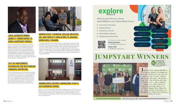 umpstart Grant awards $ 50,000 to five startup farmers in Alabama who have been farming for less than two years or plan to start farming within the next year . The winners are ( LR ): Josh & Bailey Williams ( Eclectic , AL ), Justin Anderson ( Gordo , AL ), Blake Carroll & Brittany Gulledge ( Ozark , AL ), Michael & Meagan Smith ( Newville , AL ). Marty Brunson ( Pike Road , AL ). The grant was created and funded by Alabama Ag Credit