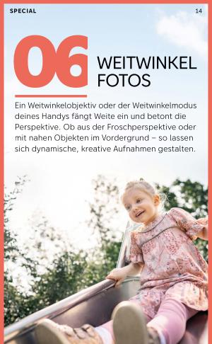 Ein Weitwinkelobjektiv oder der Weitwinkelmodus deines Handys fängt Weite ein und betont die Perspektive. Ob aus der Froschperspektive oder mit nahen Objekten im Vordergrund – so lassen sich dynamische, kreative Aufnahmen gestalten.