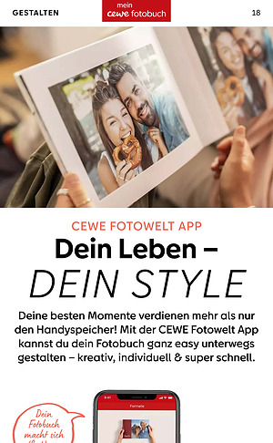 Deine besten Momente verdienen mehr als nur den Handyspeicher! Mit der CEWE Fotowelt App kannst du dein Fotobuch ganz easy unterwegs gestalten – kreativ, individuell & super schnell.