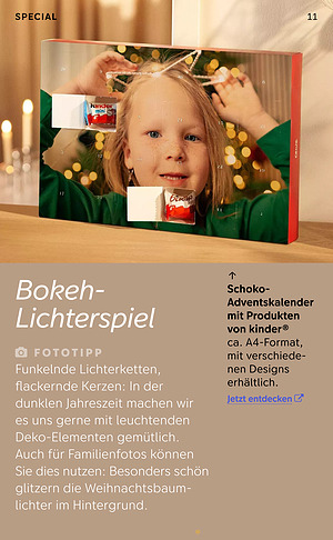 ↑ Schoko- Adventskalender mit Produkten von kinder ® ca. A4-Format, mit verschiedenen Designs erhältlich.