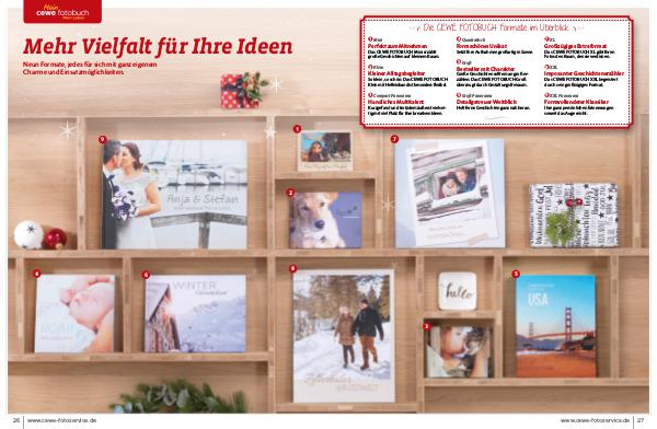 Mehr Vielfalt für Ihre Ideen Neun Formate, jedes für sich mit ganz eigenem Charme und Einsatzmöglichkeiten. 1 9 2 4 26 www.cewe-fotoservice.de 6 8