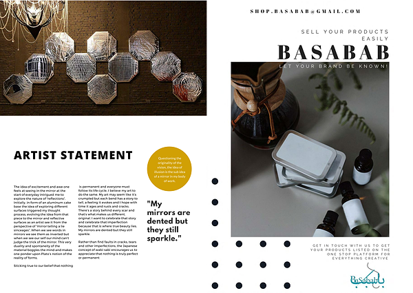 The idea of excitement and awe one feels at seeing in the mirror at the start of everyday intrigued me to explore the nature of “ reflections ”. Initially , in form of an aluminum cake base the idea of exploring different surfaces triggered my thought process , evolving the idea from that piece to the mirror and reflective surfaces as an artist see it from the perspective of “ mirror telling a lie sinceages ”. When we see words in mirrors we see them as inverted but when we see our self our mind can ’ t judge the trick of the mirror . This very duality and spontaneity of the material boggles the mind and makes one ponder upon Plato ’ s notion of the reality of forms . is permanent and everyone must follow its life cycle , I believe my art to do the same . My art may seem like it ’ s crumpled but each bend has a story to tell , a feeling it evokes and I hope with time it ages and rusts and cracks . There ’ s a story behind every scar and that ’ s what makes us different , original . I want to celebrate that story and celebrate that imperfection because that is where true beauty lies . My mirrors are dented but they still sparkle .