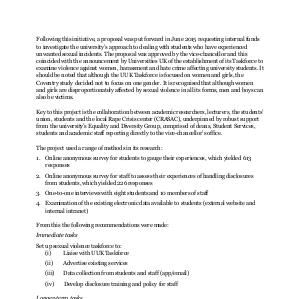 should be noted that although the UUK Taskforce is focused on women and girls, the