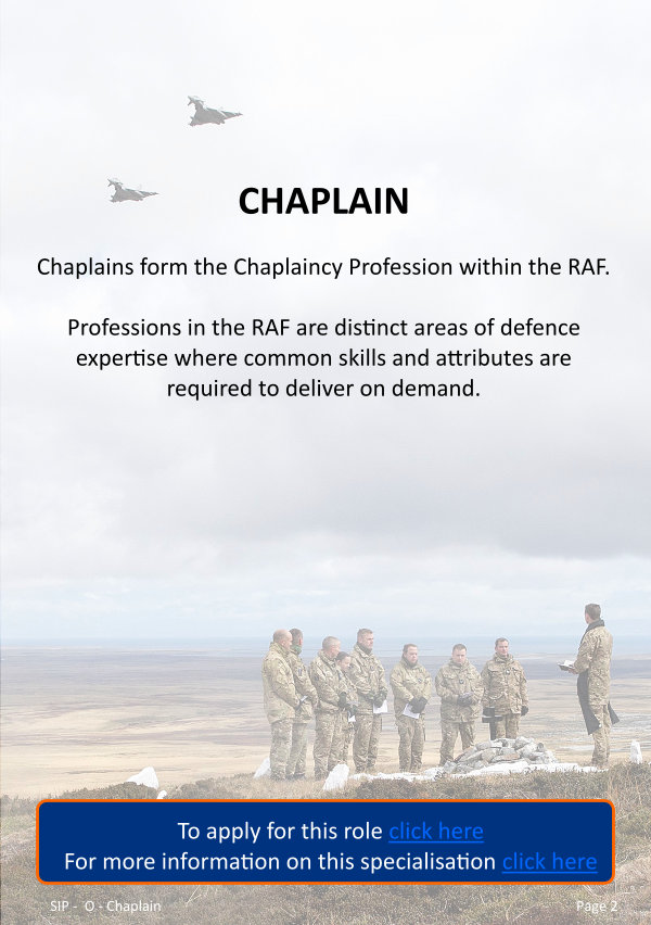 CHAPLAIN Chaplains form the Chaplaincy Profession within the RAF.
