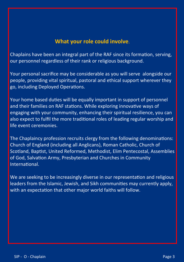 Your personal sacrifice may be considerable as you will serve alongside our people, providing vital spiritual, pastoral and ethical support wherever they go, including Deployed Operations.