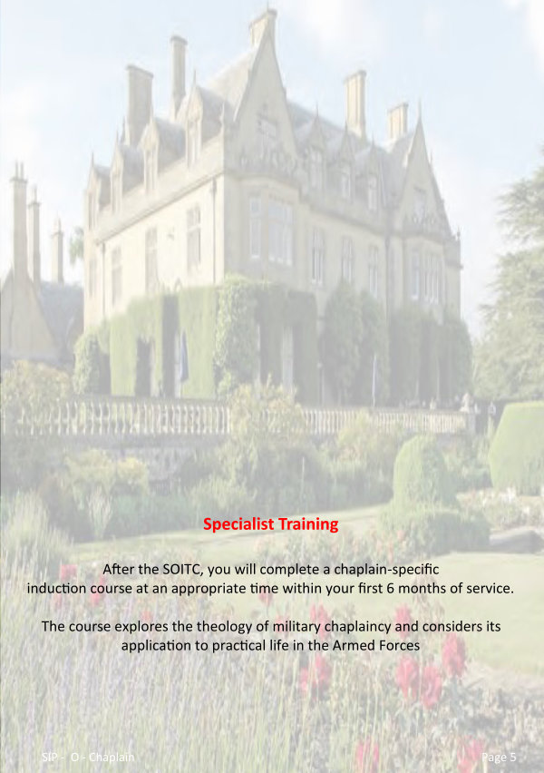 After the SOITC, you will complete a chaplain-specific induction course at an appropriate time within your first 6 months of service.