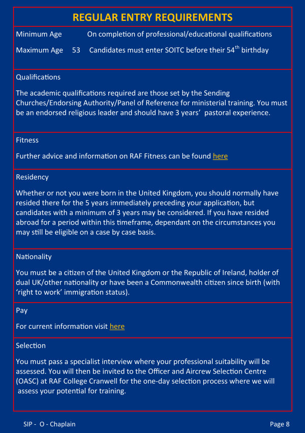 You must pass a specialist interview where your professional suitability will be assessed. You will then be invited to the Officer and Aircrew Selection Centre( OASC) at RAF College Cranwell for the one-day selection process where we will assess your potential for training.