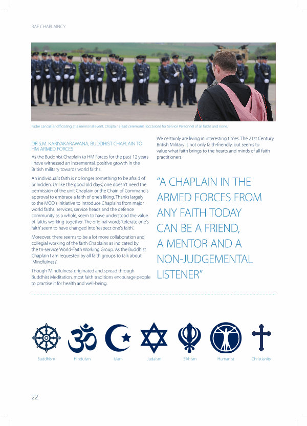 As the Buddhist Chaplain to HM Forces for the past 12 years I have witnessed an incremental, positive growth in the British military towards world faiths.