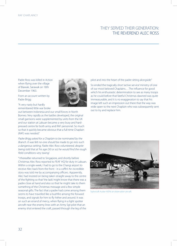 Padre Ross was killed in Action when flying over the village of Biawak, Sarawak on 18th December 1963.