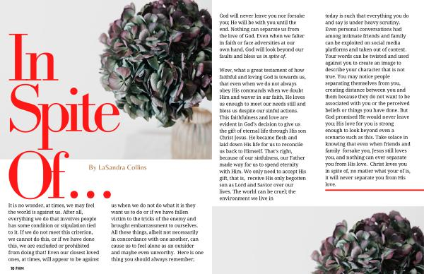 Wow , what a great testament of how faithful and loving God is towards us , that even when we do not always obey His commands when we doubt Him and waver in our faith , He loves us enough to meet our needs still and bless us despite our sinful actions . This faithfulness and love are evident in God ’ s decision to give us the gift of eternal life through His son Christ Jesus . He became flesh and laid down His life for us to reconcile us back to Himself . That ’ s right , because of our sinfulness , our Father made way for us to spend eternity with Him . We only need to accept His gift , that is , receive His only begotten son as Lord and Savior over our lives . The world can be cruel ; the environment we live in today is such that everything you do and say is under heavy scrutiny . Even personal conversations had among intimate friends and family can be exploited on social media platforms and taken out of context . Your words can be twisted and used against you to create an image to describe your character that is not true . You may notice people separating themselves from you , creating distance between you and them because they do not want to be associated with you or the perceived beliefs or things you have done . But God promised He would never leave you ; His love for you is strong enough to look beyond even a scenario such as this . Take solace in knowing that even when friends and family forsake you , Jesus still loves you , and nothing can ever separate you from His love . Christ loves you in spite of , no matter what your of is , it will never separate you from His love .
