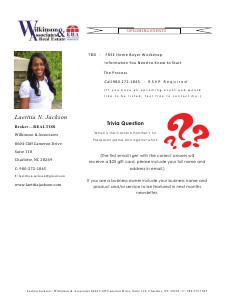 Laetitia Jackson / Wilkinson & Associates 8604 Cliff Cameron Drive, Suite 110, Charlotte, NC 28269 / C: 980.272.1845