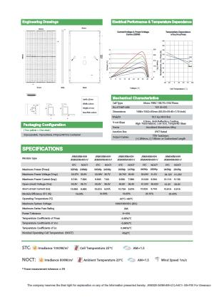 -50 -25 0 25 50 75 100 20 40 60 80 100 120 140 160 180 ��� ��� ���� -40� ~+ 85� 1000 / 1500VDC ( IEC ) 20A 0 ~+ 3 % -0.35 %/ � -0.29 %/ � 0.048 %/ � 45 ± 2� Current-Voltage & Power-Voltage Curves ( 325W ) Temperature Dependence of Isc , Voc , Pmax El ngineering Drawings E ectrical Performance & Temperature Dependence SPECIFICATIONS The company reserves the final right for explanation on any of the information presented hereby . JKM325-345M-60H- ( V ) -A4- EN-F30 ������������������ � ������ ���� ����������������� � ������ ����� ����������������������������������� ��������������� ��������������������� ������������������������ JKM325M-60H-V JKM325M-60H JKM330M-60H-V JKM330M-60H JKM335M-60H-V JKM335M-60H JKM340M-60H-V JKM340M-60H JKM345M-60H-V JKM345M-60H ��� ���� ��� ���� ��� ���� Mechanical Characteristics ��������� ���������������� ���������� ������ ����������� ����� ������������ ������������� ������������������������� ���������� �������������������������������������� ������������������������ ���������� ������������������ ������������������������������� �������������������������������������������� ���������������������������� ������������������������������������������������� 960mm 1002mm A 1684mm 1360mm 860mm 5 10 15 20 25 30 35 45 40 0 0 2 4 6 8 10 12 0 70 140 210 280 350 H ����������� � � ������������������������������������������ ������������ �������������������� ��������������������������� ��������������������������� �������������������������� ��������������������������� ������������������������� ������������������������� ���������������������� �������������������������� ��������������� �������������������������������� ������������������������������� ������������������������������� ������������������������������������������ Packaging Configuration Back Side ront F Voltage ( V ) Current ( A ) Normalized Isc , Voc , Pmax (%) Power ( W ) Cell Temperature ( � ) ��� ���� ��� ���� ����������� ����������� ������������ ��������������� 19.26 % 19.85 % 19.56 % 20.45 % 20.15 % 30 30 30 15 14 9 9 4.5 B B A 345Wp 34.12V 10.11A 41.2V 10.91A 254Wp 8.13A 31.23V 38.8V 8.81A 340Wp 33.93V 10.02A 41.00V 10.82A 250Wp 8.06A 31.5V 38.62V 8.74A 325Wp 33.37V 9.74A 40.4V 10.50A 239Wp 7.82A 30.6V 38.1V 8.48A 330Wp 33.54V 9.84A 40.6V 10.61A 243Wp 7.9A 30.7V 38.2V 8.57A 335Wp 33.74V 9.93A 40.8V 10.73A 247Wp 7.98A 30.9V 38.4V 8.67A JKM325-345M-60H- ( V ) -A4C1- EN-F30 For Greensun