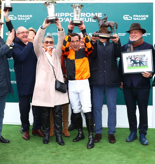 Un sacre pour le poulain et pour son équipe: l’ entraîneur François Nicolle, le jockey Kévin Nabet, ainsi que les copropriétaires – Thierry Cyprès, l’ écurie Lynne Maclennan, Paul-Étienne Carrillon et Renaud Lavillenie. Kingland a connu une année de 4 ans quasi parfaite avec trois autres succès de Groupes: les Prix de Pépinvast, de Maisons-Laffitte et Pierre de Lassus. Rappelons que Kingland avait déjà gagné, en débutant, le très convoité Prix Finot (Listed). Côté actualité en revanche, le cheval est malheureusement actuellement sur la touche, victime d’ une tendinite. Il est en vacances prolongées (de 14 mois) chez son éleveur. « L’ objectif est de le reprendre gentiment au travail cet hiver pour espérer l’ avoir au top à l’ automne 2026. C’ est un travail de longue haleine, mais nous sommes patients. Son propre frère par Cokoriko, né cette année, a lui aussi été vendu en partie aux époux Maclennan. Leur mère Annaland, une fille de Saint des Saints est en quelque sorte notre jument de cœur. La jument de cœur de ma femme. Elle nous avait déjà donné Figuero (N. D. L. R.: double lauréat de Groupe 1 à Auteuil, dont le Prix La Haye Jousselin). »