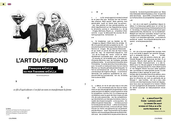 F. N. Au début, on ne le sait pas trop à vrai dire( rires)! Je ne connaissais pas du tout ce milieu mais on est vite plongé dans le grand bain. C’ est assez excitant au départ, surtout quand on aime la compétition, comme moi. Il y a beaucoup de corrélations avec le sport de haut niveau et cela m’ a de suite passionnée. Avec les compétitions qui s’ enchaînent, ce n’ est pas monotone, mais il y a plein de choses à acquérir. Je me souviens être allée à la grand-messe des AQPS à Cercy où tout le monde parlait de cheval. Au dîner d’ une bonne quarantaine de convives, je me suis dit que j’ allais trouver au moins une personne qui ne parlerait pas de chevaux. Loupé! À ce moment-là, il y a deux options, soit vous essayez d’ écouter et d’ assimiler, soit vous êtes condamné à ne pas entrer dans ce monde-là. J’ ai choisi la première option car j’ étais très intéressée. C’ était fastidieux, mais j’ ai assimilé plein de choses. Depuis 2012, je travaille à l’ écurie sur la facturation, la comptabilité, l’ aspect social …