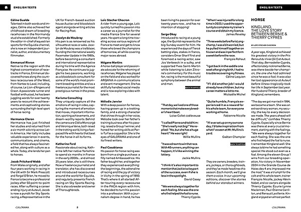 “ The day we got married in 1994, we became a team. She was an extraordinary woman, my security, the key to every decision we made. The years ahead will be difficult,” confides Thierry Cyprès. Especially since Bernie was there at every crucial moment, starting with the foalings.“ We were always together for each foaling. She was the one who first helped the foal to nurse. I remember Kingland well. She always told me he had something special. He stood out even as a foal. Among the eleven Group 1 wins from our breeding operation, his victory in November 2024 in the Grande Course de Haies des 4 ans impressed me the most.” It was a triumph for the colt and his whole team, trainer François Nicolle, jockey Kévin Nabet, and co-owners alongside Thierry Cyprès: Écurie Lynne Maclennan, Paul-Étienne Carrillon, and Renaud Lavillenie. Kingland enjoyed an almost perfect
