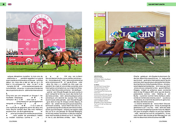 Regal Resolve et Zayida. À 48 ans, Françis-Henri Graffard devient le plus jeune meilleur entraîneur en France depuis qu’ André Fabre avait entamé sa série victorieuse en 1987 à l’ âge de 42 ans. André Fabre fut, bien sûr, crédité du titre suprême pendant les vingt-et-une années suivantes sans interruption, et compte à ce jour vingt-huit titres. Francis-Henri Graffard rejoint ainsi Alain de Royer- Dupré et Jean-Claude Rouget, les seuls autres à avoir remporté le titre au cours des trente-huit dernières années. André Fabre et quelques autres entraîneurs ont dominé les courses françaises durant toute cette période. Jean-Claude Rouget figure dans le top 10 chaque année depuis, et Henri-Alex Pantall n’ en est sorti qu’ une seule fois, terminant onzième. Francis-Henri Graffard, lui, a figuré dans le top 10 huit des dix dernières années, tandis que Christophe Ferland y est apparu sept fois sur la même période. En Grande-Bretagne, le titre de meilleur entraîneur a été plus disputé, avec neuf lauréats différents sur la même durée; même si, ces dernières années, Aidan O’ Brien,