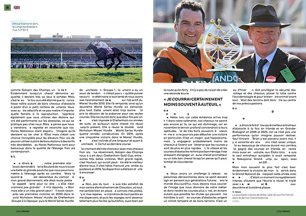 W. M. Hélas non, car cette échéance arrive trop tôt dans notre calendrier, nos chevaux ne seront pas encore prêts, ce qui est dommage, car en novembre le terrain profond conviendrait à leurs aptitudes. J’ ai de très bons souvenirs à Auteuil, même si je ne pourrais pas détacher une victoire en particulier. C’ est un magnifique hippodrome, mais j’ y engagerai probablement moins de chevaux à l’ avenir car j’ observe que les courses y sont de plus en plus rapides. Or, la vitesse et les courses d’ obstacles ne font pas bon ménage. Il est stressant d’ engager un jeune cheval prometteur ou un très bon cheval lorsqu’ on pense qu’ il peut tomber et s’ accidenter.