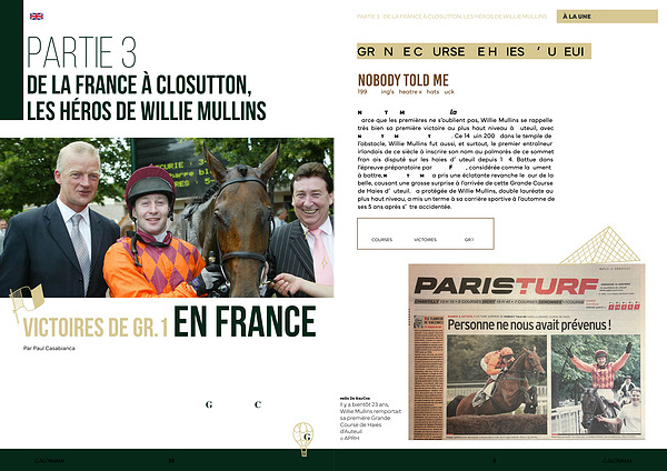 Parce que les premières ne s’ oublient pas, Willie Mullins se rappelle très bien sa première victoire au plus haut niveau à Auteuil, avec Nobody Told Me( King’ s Theatre). Ce 14 juin 2003 dans le temple de l’ obstacle, Willie Mullins fut aussi, et surtout, le premier entraîneur irlandais de ce siècle à inscrire son nom au palmarès de ce sommet français disputé sur les haies d’ Auteuil depuis 1874. Battue dans l’ épreuve préparatoire par Karly Flight, considérée comme la jument à battre, Nobody Told Me a pris une éclatante revanche le jour de la belle, causant une grosse surprise à l’ arrivée de cette Grande Course de Haies d’ Auteuil. La protégée de Willie Mullins, double lauréate au plus haut niveau, a mis un terme à sa carrière sportive à l’ automne de ses 5 ans après s’ être accidentée.