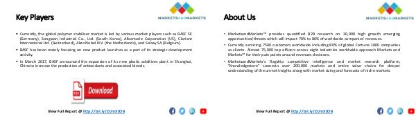 ▪ Currently, the global polymer stabilizer market is led by various market players such as BASF SE