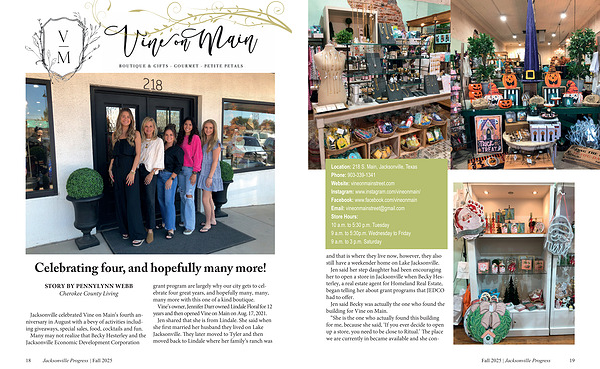 Many may not realize that Becky Hesterley and the Jacksonville Economic Development Corporation grant program are largely why our city gets to celebrate four great years, and hopefully many, many, many more with this one of a kind boutique.