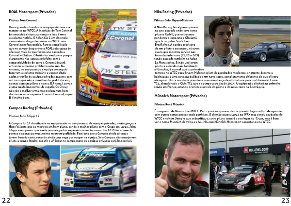 A Campos foi 2ª classificada no ano passado no campeonato de equipas privadas, muito graças a Hugo Valente que se mostrou em bom plano, sendo o melhor piloto com o Cruze em 2015. John Filippi é um jovem que ainda procura ganhar experiência nos turismos. Em 2015 fez apenas 6 pontos e apenas pontualmente mostrou qualidade. Para este ano a Campos ainda só tem o jovem francês certo, estando ainda uma vaga por ocupar na equipa. Se a Campos não arranjar um piloto a tempo inteiro, repetir o 2º lugar no campeonato de equipas privadas será impossível.