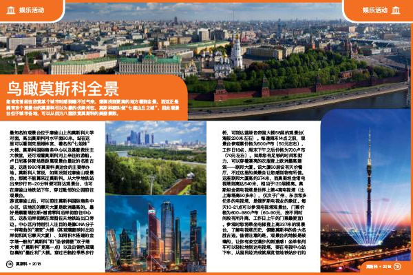 您肯定曾经在欣赏某个城市时感到喘不过气来, 想要找到更高的地方看到全景 。 而这正是 拥有多个观景台的莫斯科引以为豪的优势所在 。 莫斯科被叫做“ 七座山丘之城”, 因此观景 台位于城市各地, 可以从四方八面欣赏莫斯科的美丽景致 。