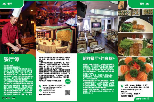 楼下是时尚优雅的欧洲大厅有柔软的沙发和扶手 椅 、 地毯 、 晶吊灯和私有卡拉 ok 的系统, 理想 的宴会 。 工作时间表再次强调, 酒店的餐厅, 唐, 其大门 是敞开的 。 星期一至星期五提供了多种类型的 商务午餐 。 在工作日从上午 2 点到下午 4 时在所 有项目的主菜单上有 20 % 的折扣的 。 时间已经做了标志性的餐厅, 并且创造性的美食 厨师裸体的娱乐设施有包括游泳池和按摩已经引 起资本的美食家的新一波的利益, 在中国菜, 如 此多种多样和不断演变 。 这意味着伟大的黄金 年龄的唐继续在莫斯科中心的资本 。 等待着你 在餐厅 TAN! 每天晚上! 现场音乐: 钢琴 / 竖琴