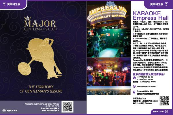 莫斯科之夜 住宿 THE TERRITORY OF GENTLEMAN'S LEISURE 92 莫斯科 • 2018 MOSCOW, KUDRINSKY LANE 3B OF ARTICLE +7 (985) 275-90-95 E-mail: Info.major@bk.ru www. major-massage.ru
